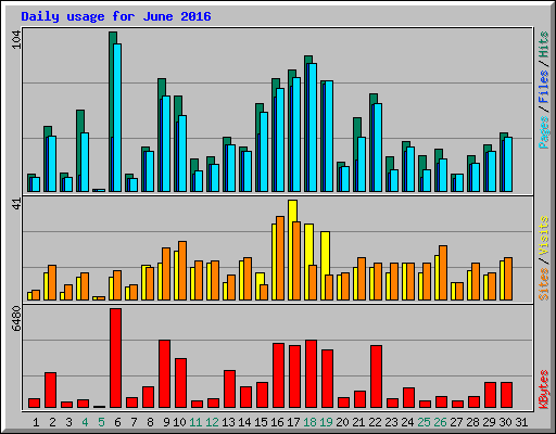 | Day | Hits | Files | Pages | Visits | Sites | KBytes | ||||||