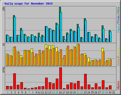 | Day | Hits | Files | Pages | Visits | Sites | KBytes | ||||||
